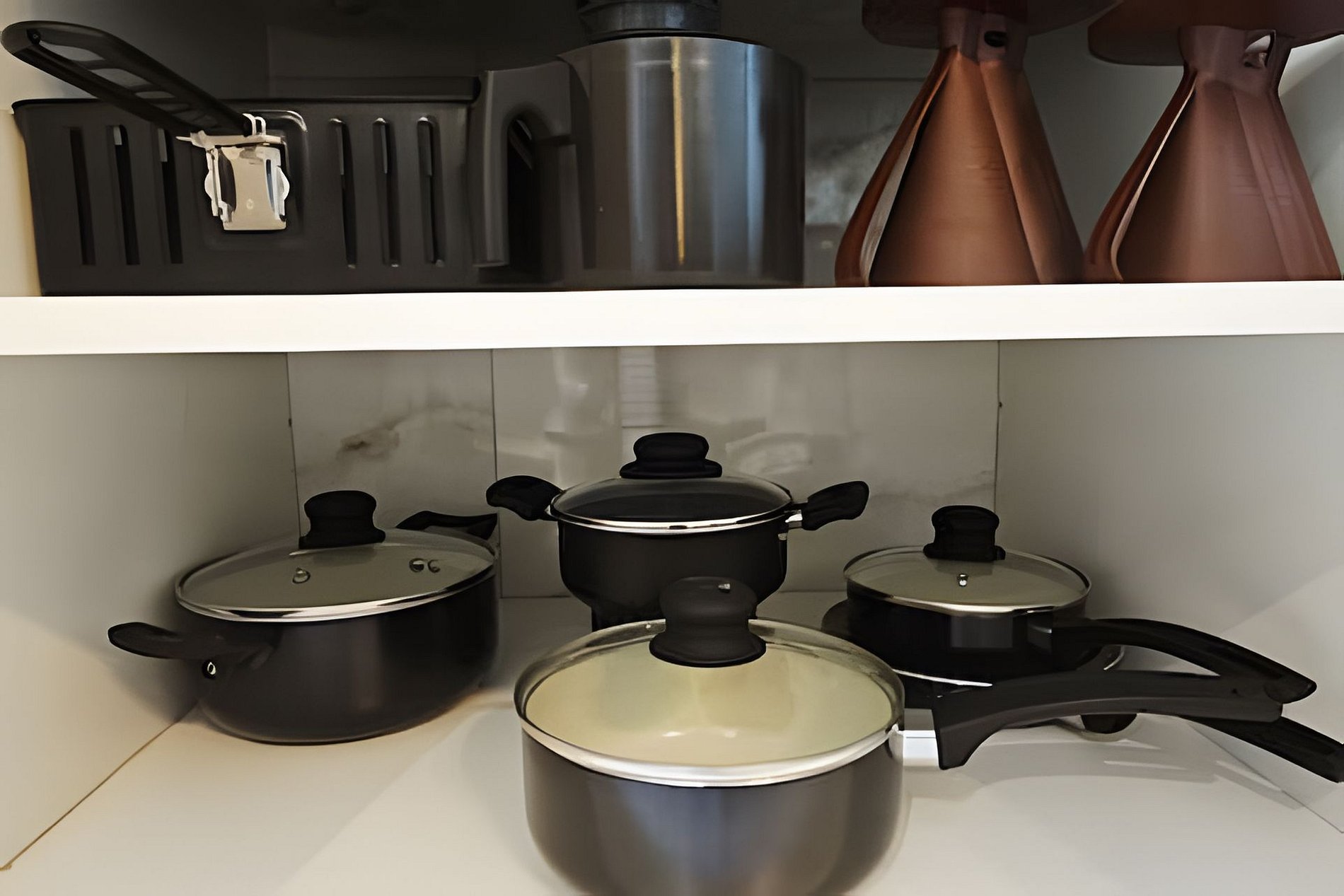 Totalmente equipada para preparar desde lanches até refeições completas. Conta com pratos, talheres, copos, panelas, fogão cooktop a gás 4 bocas, geladeira com freezer separado, airfryer moderna, micro-ondas, sanduicheira e liquidificador. Tudo para facilitar sua rotina.