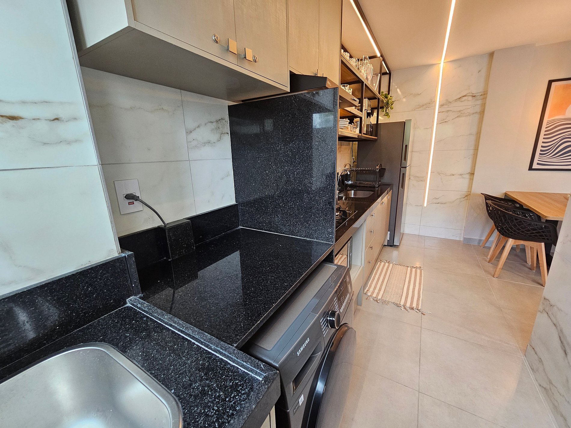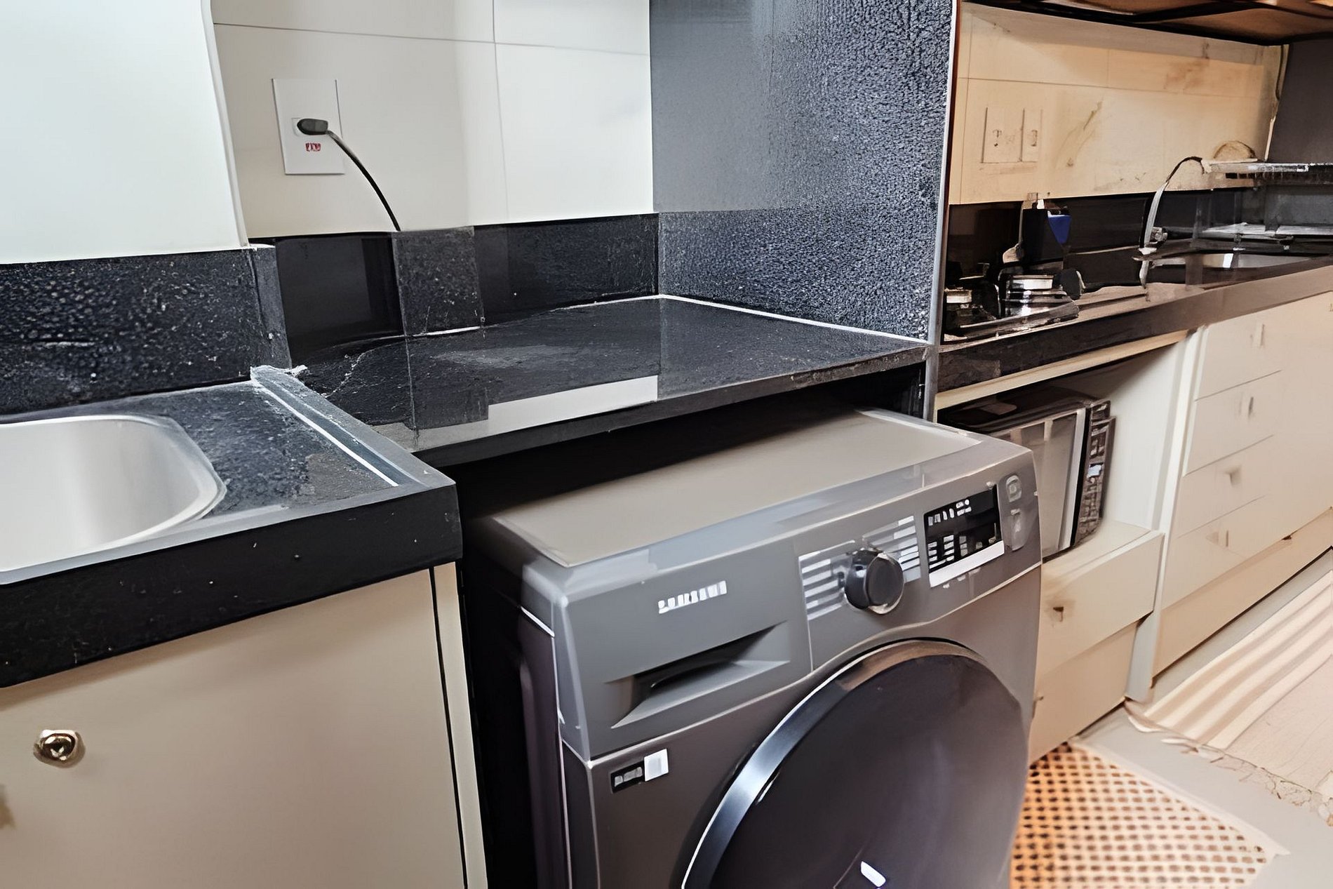 Prática e funcional, com tanque, máquina lava e seca e varal, oferecendo autonomia total durante sua estadia.