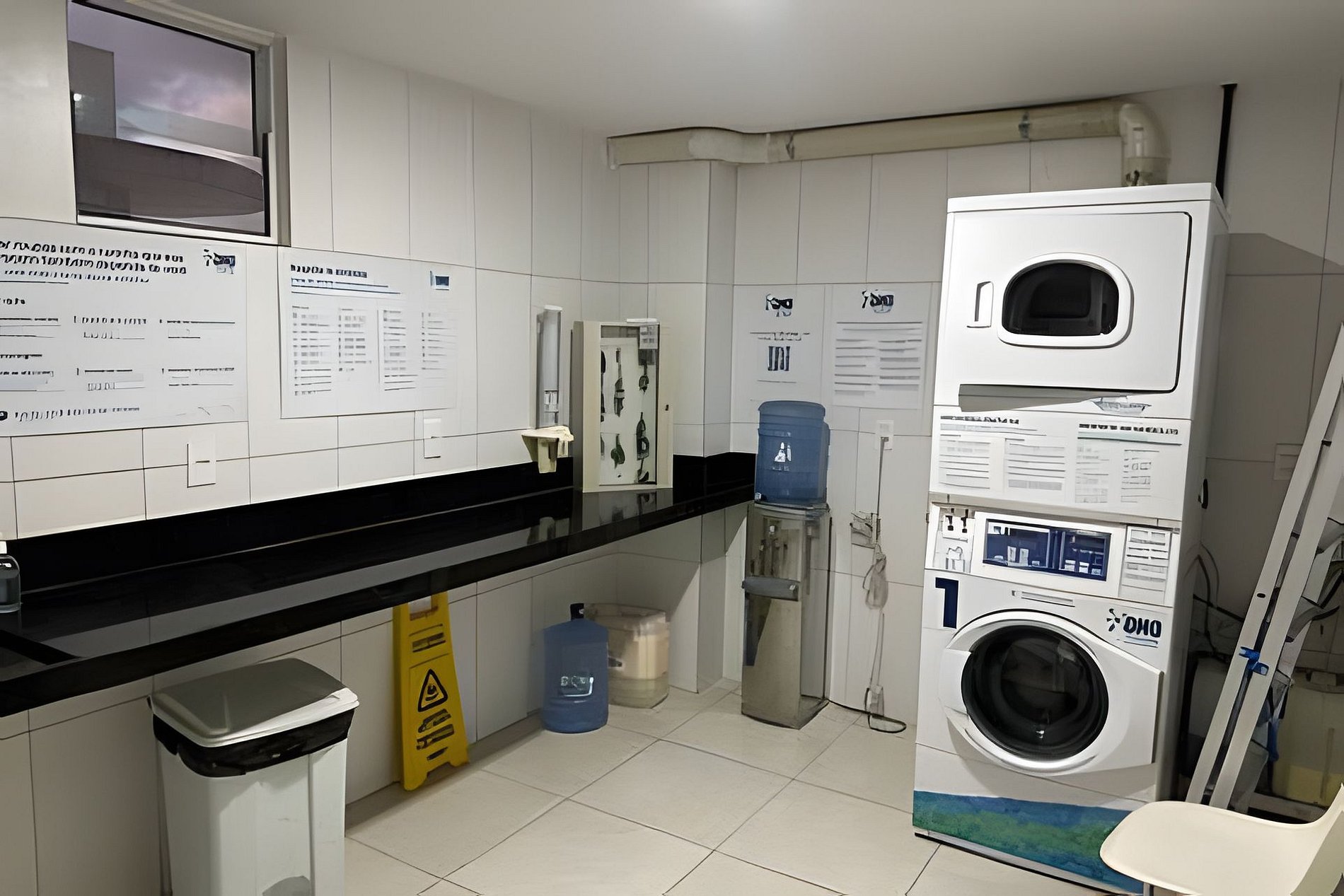 PRÉDIO: possui portaria 24h, circuito de câmeras, 2 elevadores, garagem rotativa fechada e coberta, estacionamento aberto externo e lavanderia da franquia OMO.