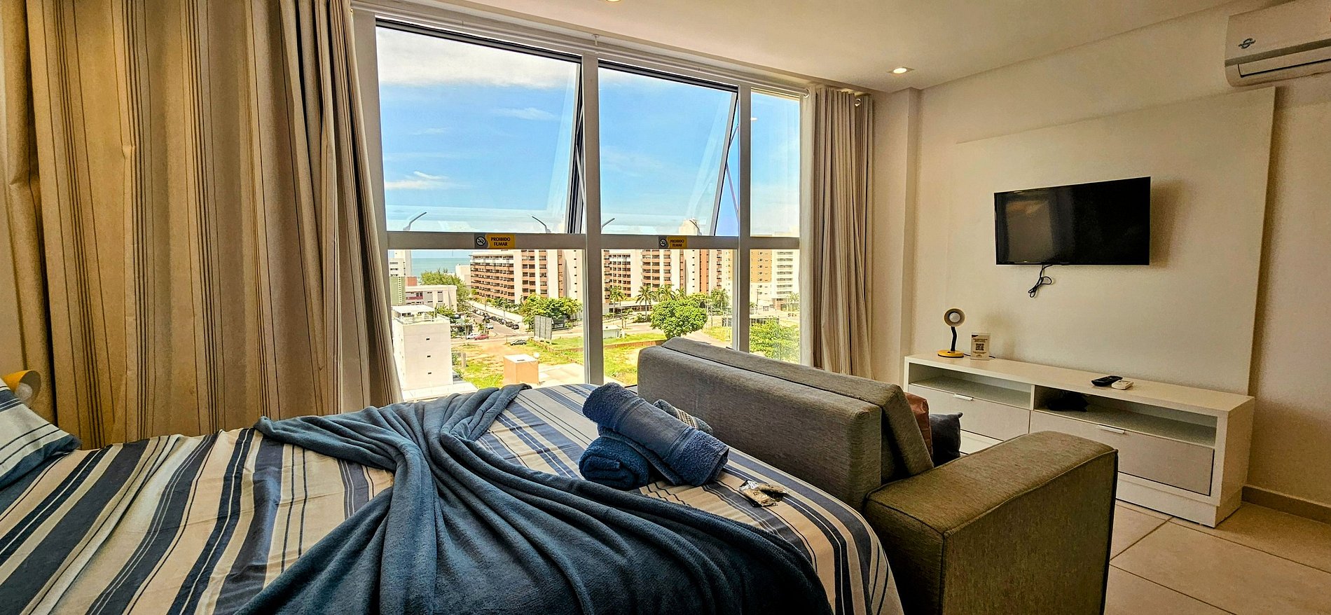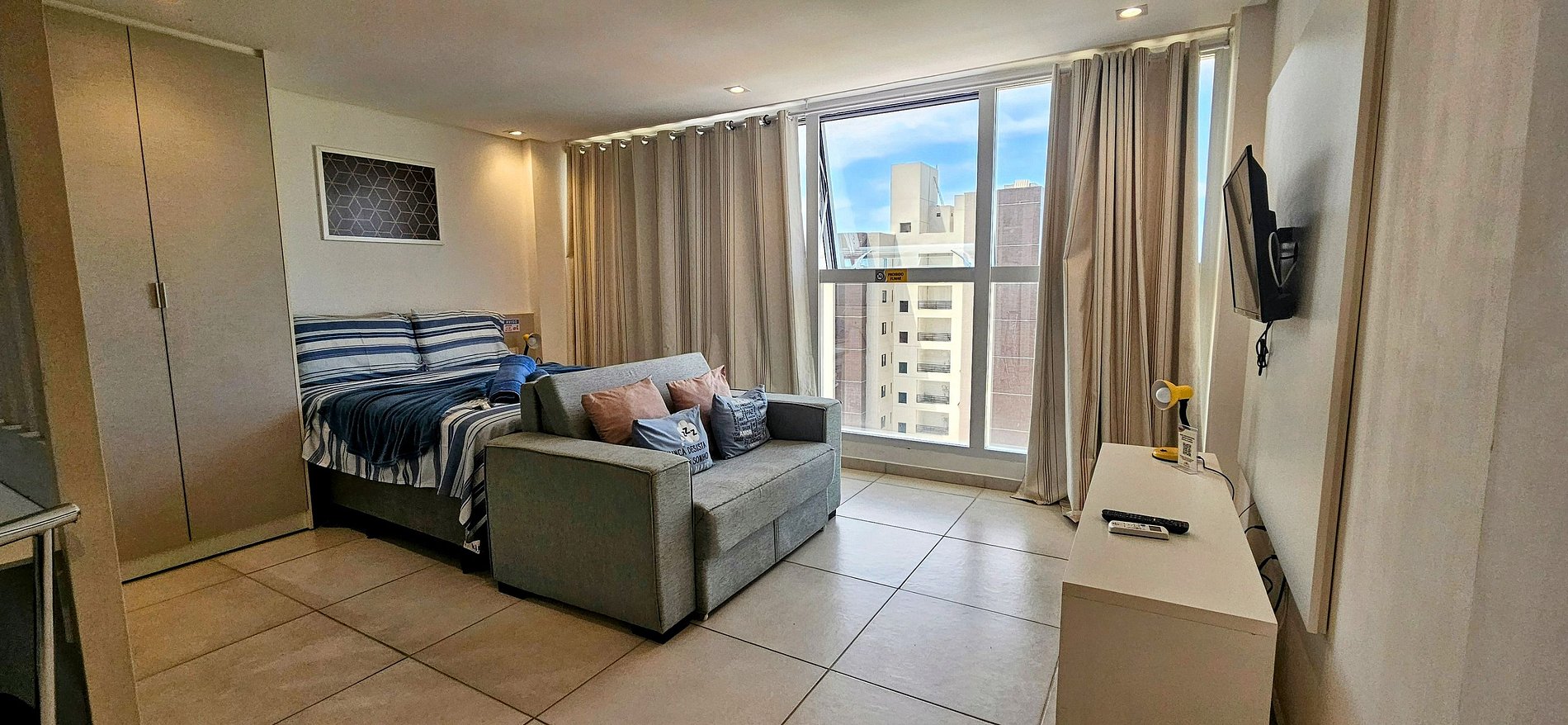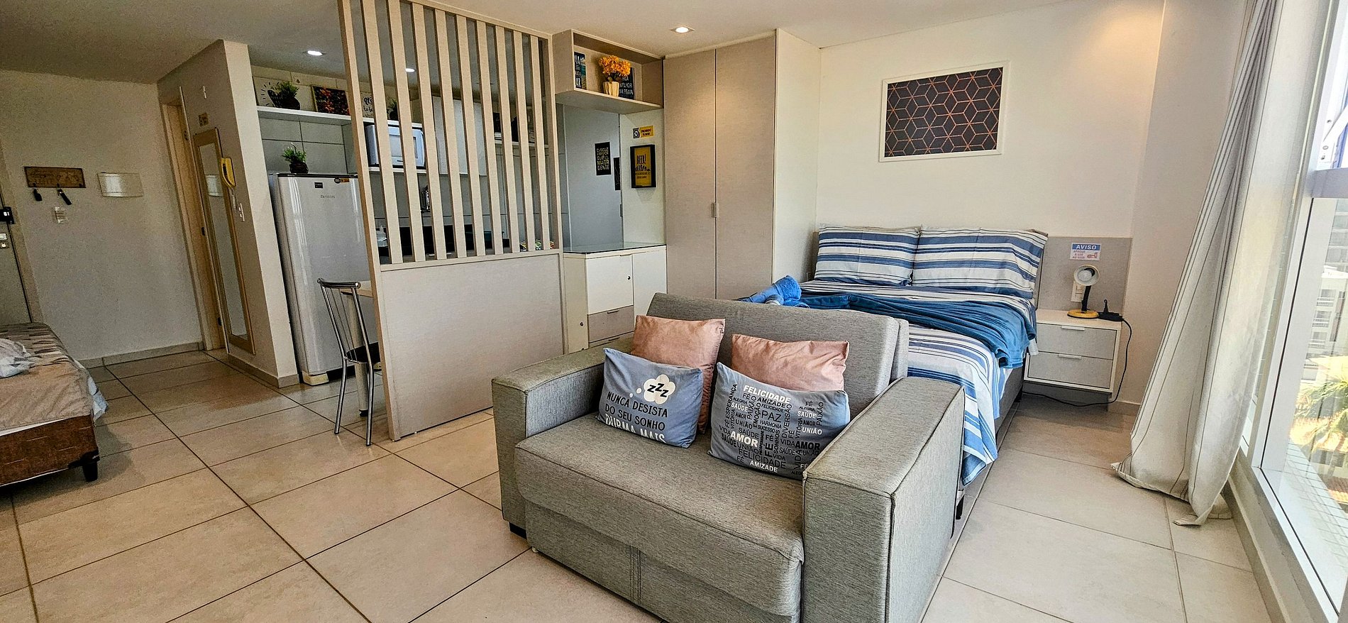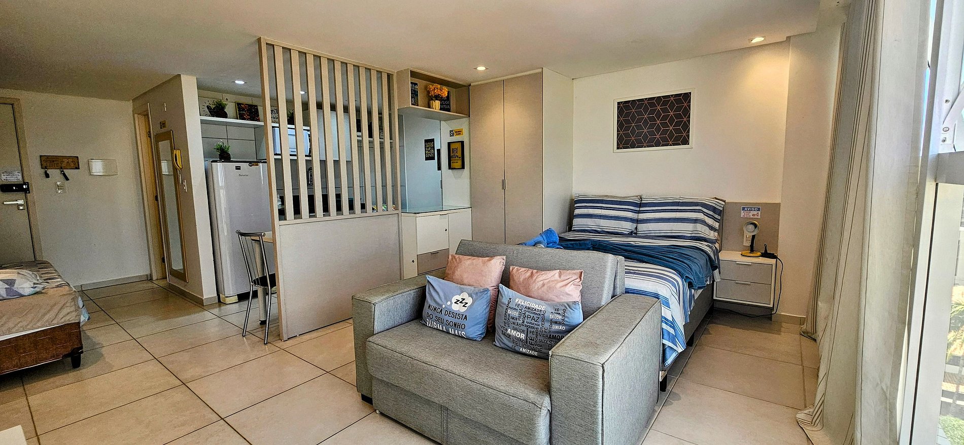 Studio completo, vista deslumbrante em Ponta de Campina! Desfrute de um espaço acolhedor, com uma vista incrível da praia mais charmosa da região metropolitana de João Pessoa/PB! O Studio de 35m² é amplo, totalmente equipado para garantir seu conforto. Ideal a quem busca descanso e praticidade. A localização é imbatível: a poucos metros do mar, do GetMall (com mercado, farmácia e restaurantes) e do famoso Lovina Beach Club. Relaxe nas águas calmas e rasas na maré baixa ou se aventure no kitesurf