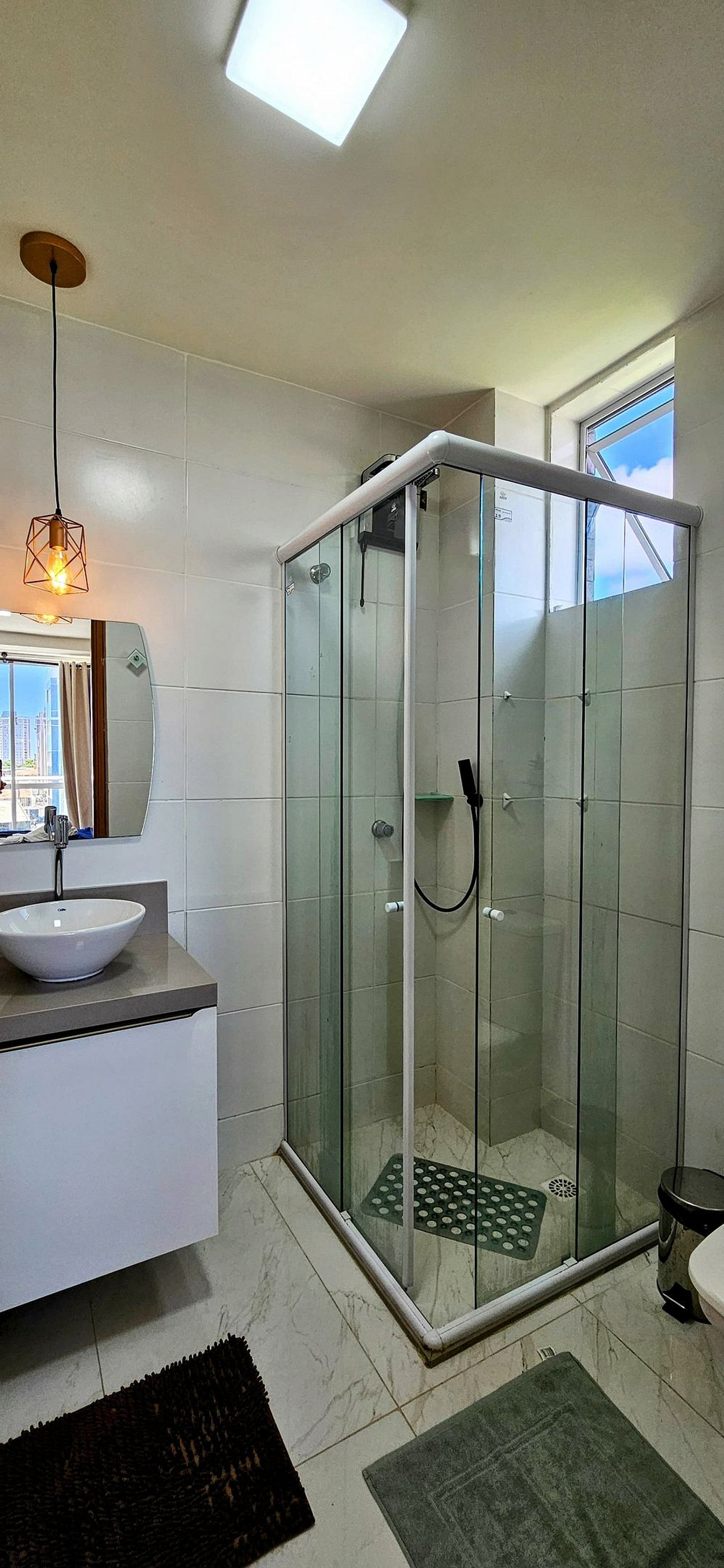 BANHEIRO: box em vidro e ducha super moderna e eficiente.
