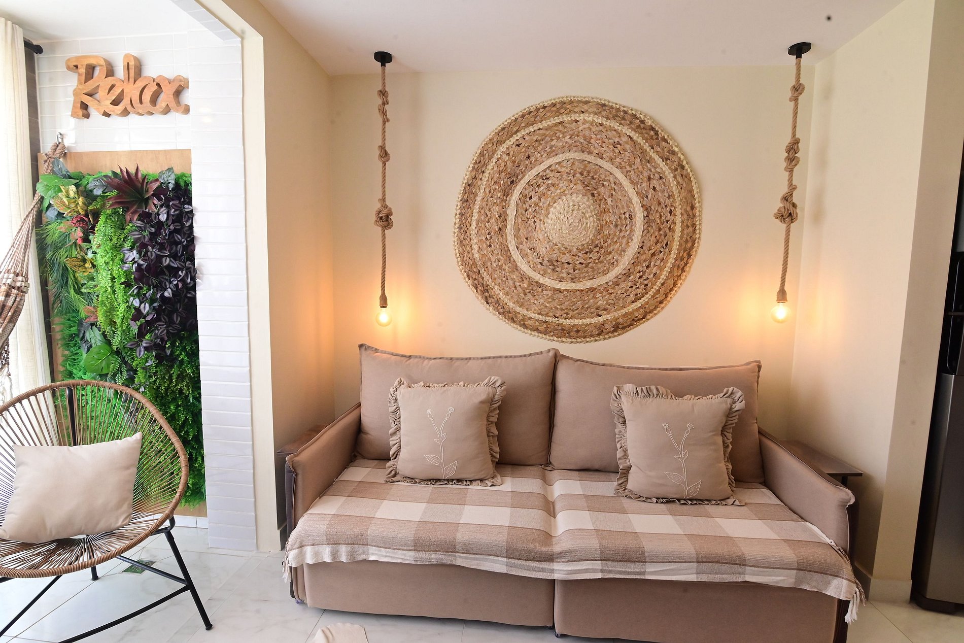 Área de estar com sofá/cadeira
