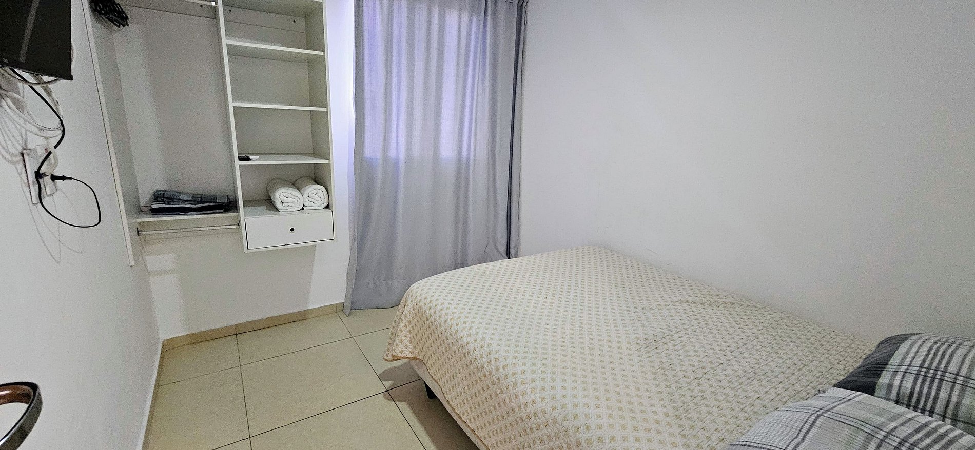 DORMITÓRIO 1: Cama casal, tv, ar condicionado e cortina;