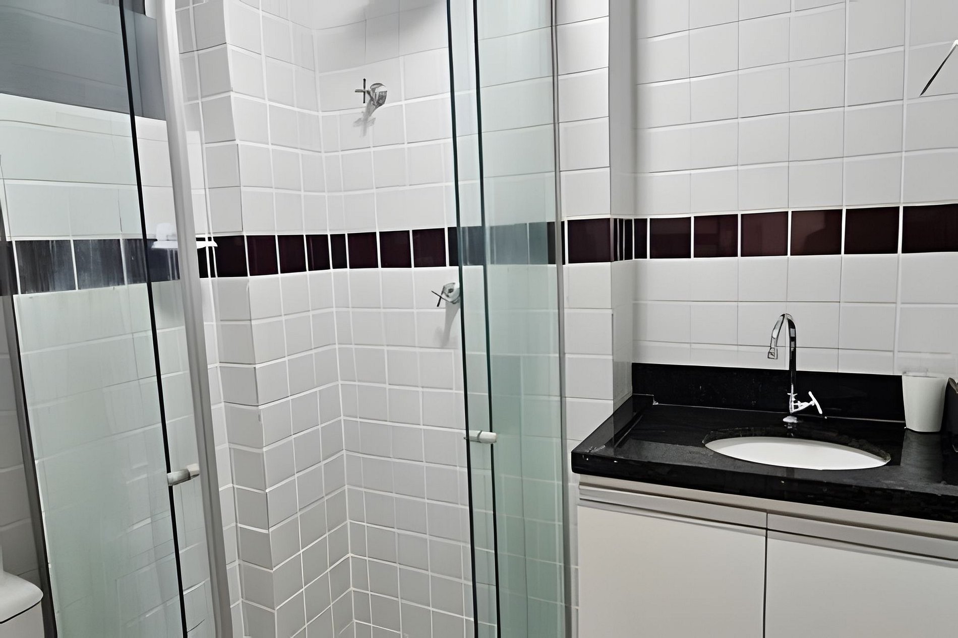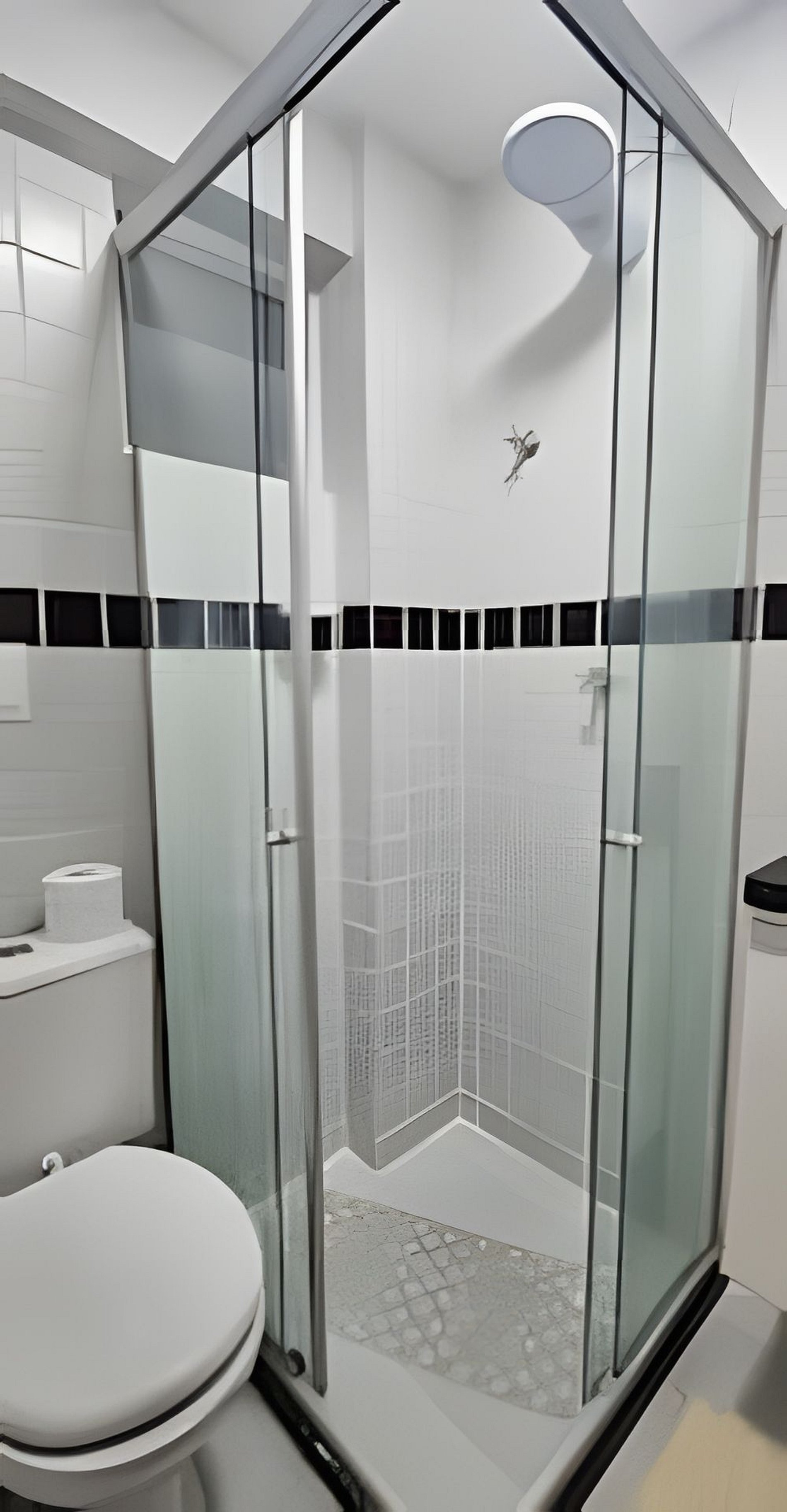 BANHEIRO: Box em vidro, chuveiro com água quente e espelho.